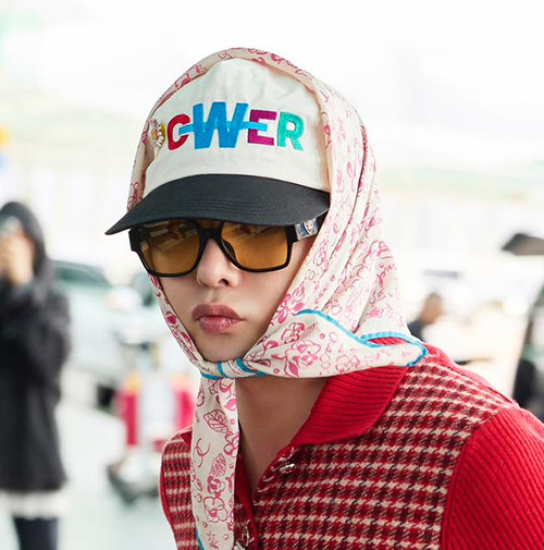 - 지드래곤: 볼캡위로 드리운 스카프를 할머니풍으로 스타일링했지만 무난히 소화